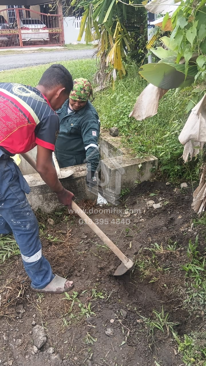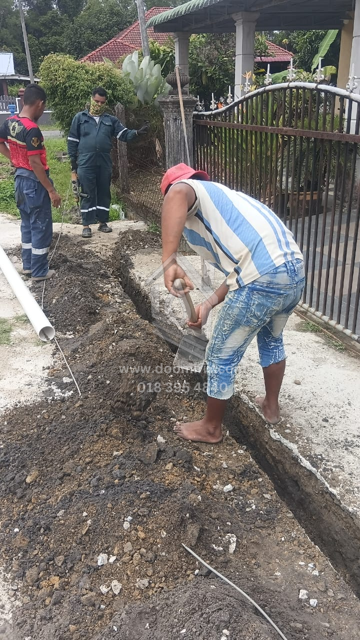 Gali manual, pasang manual… tiada excavator digunakan. Kedalaman tanah lebih kurang 2 kaki, panjang anggaran 70 kaki.