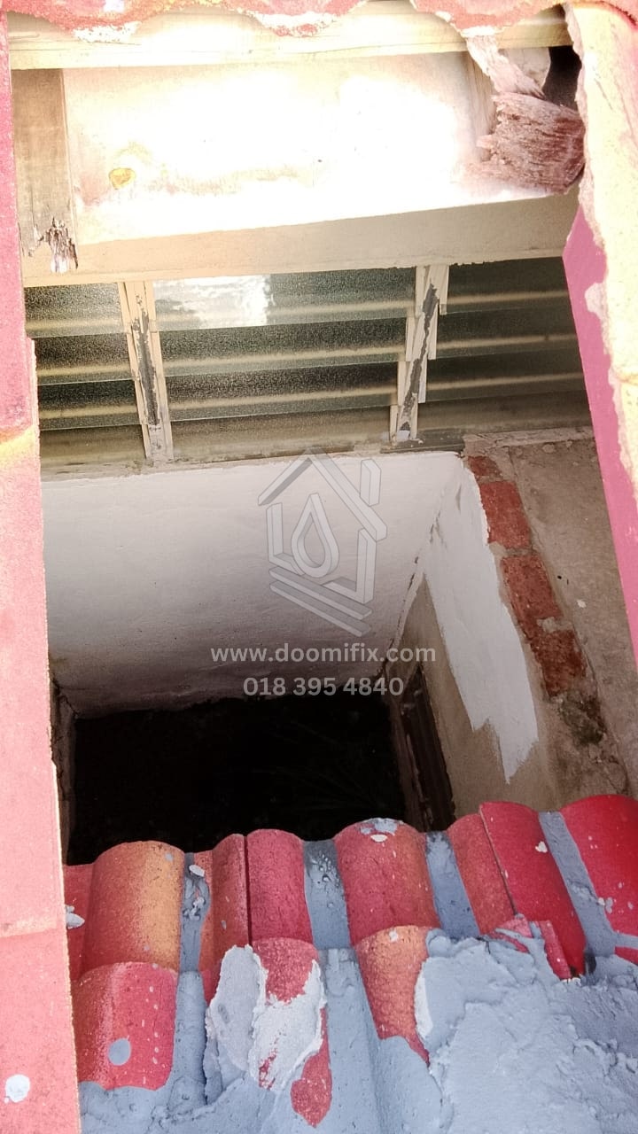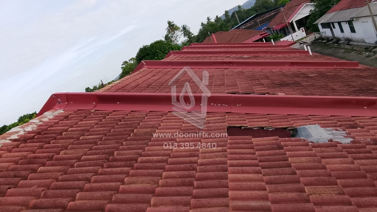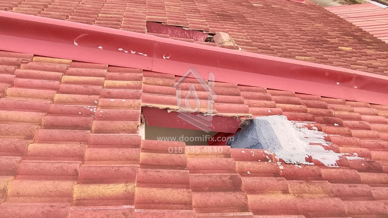 Roof ridge pun penting. Kalau simen crack dan takde lining, hujan mudah masuk. Kami akan install lining dan repair simen untuk better protection.