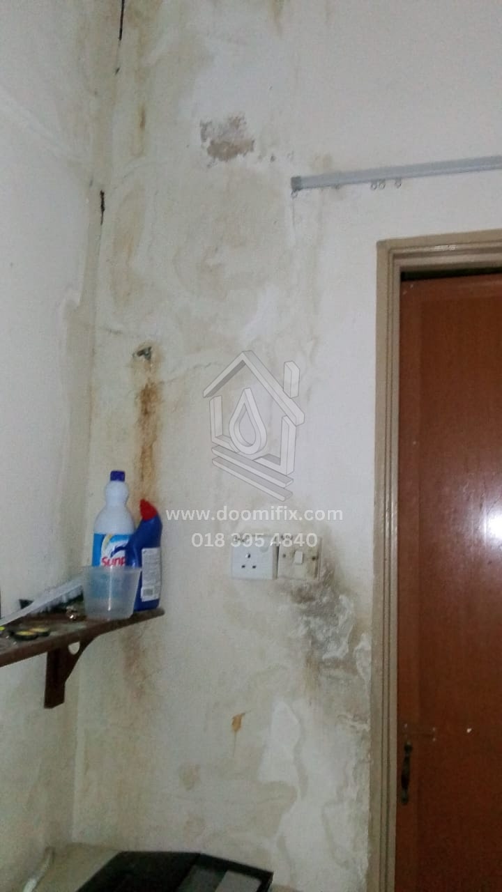 Untuk slab bocor, kerja repair termasuk cuci surface, re-render dan apply waterproofing. Bagi leaking pipe, kami suggest pasang new pipe di bahagian luar supaya lebih easy untuk maintenance dan kurang hidden leakage risk.