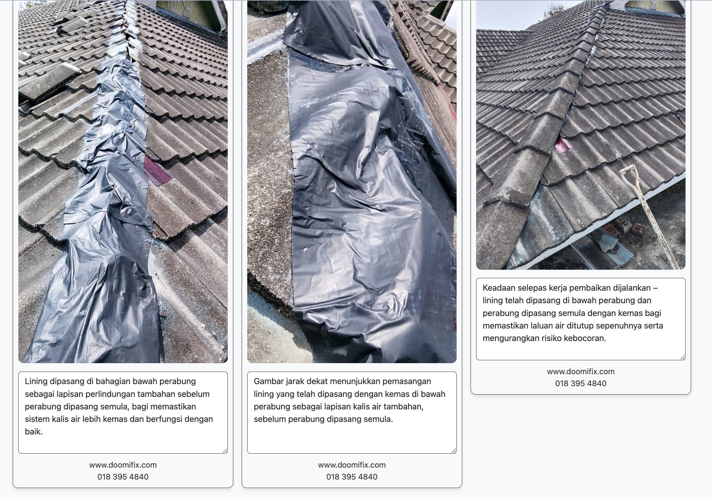 Sebelum ini, bahagian perabung didapati tidak mempunyai lining di bawahnya, menyebabkan air hujan masih boleh masuk melalui celah bawah perabung dan berisiko mengakibatkan kebocoran.