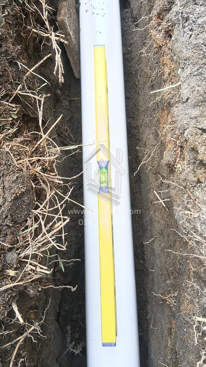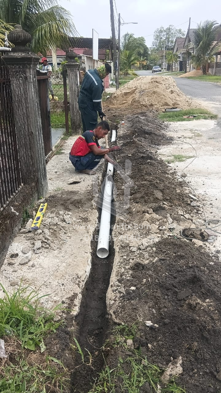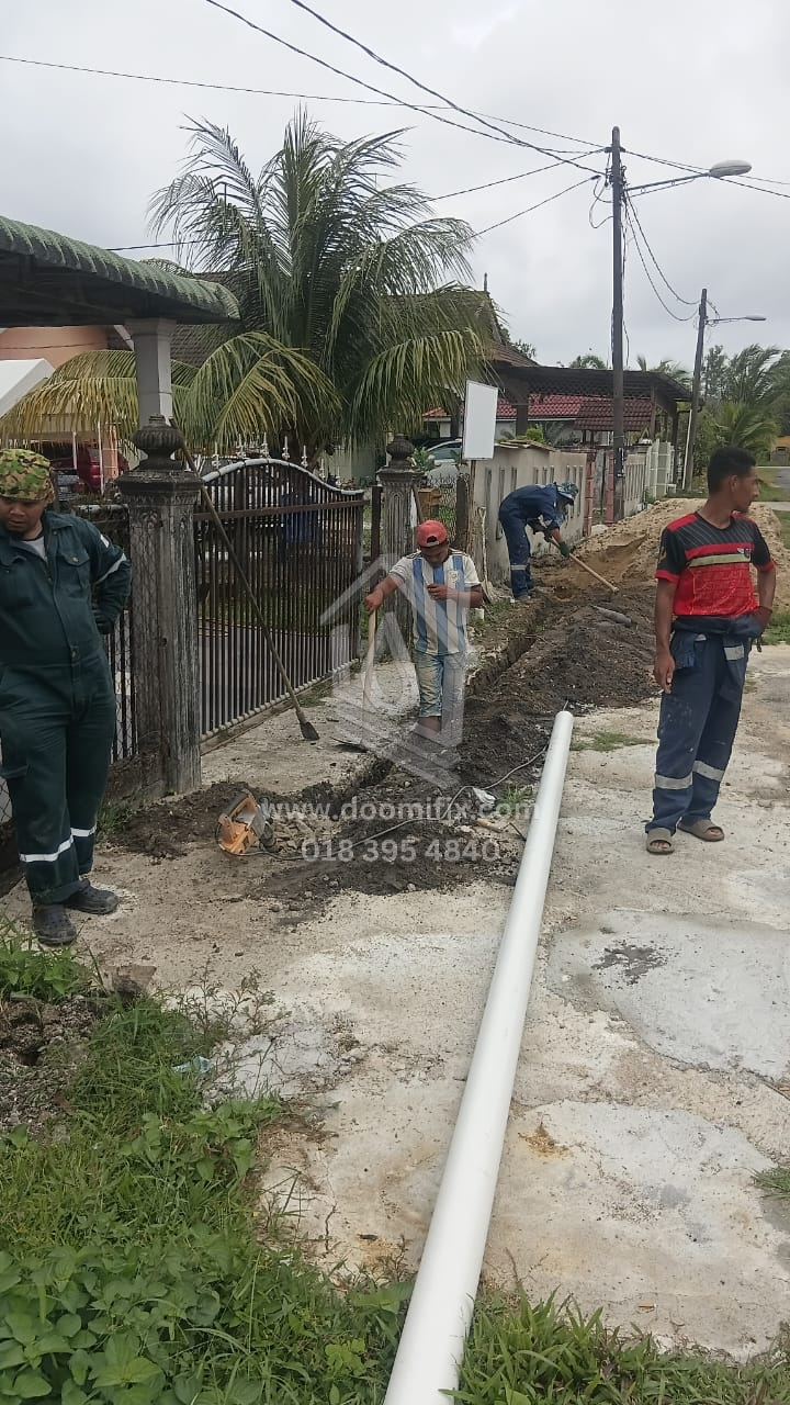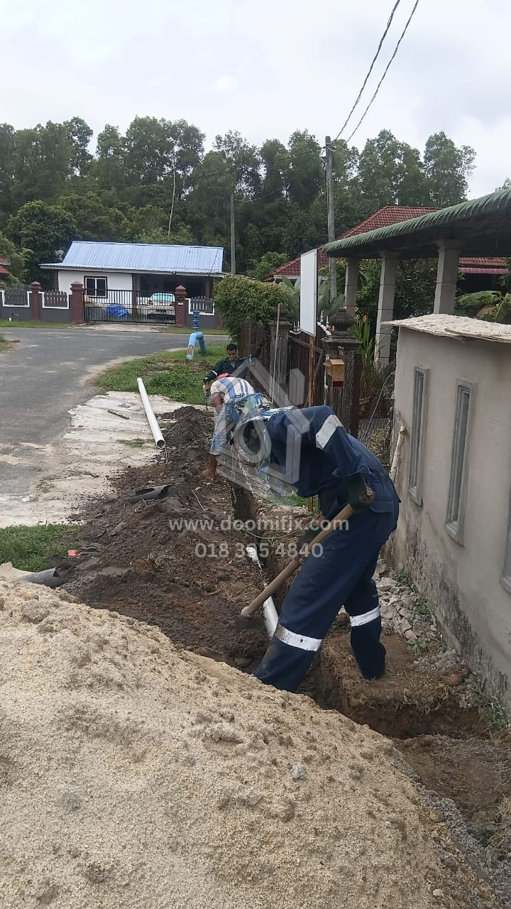 Gali manual, pasang manual… tiada excavator digunakan. Kedalaman tanah lebih kurang 2 kaki, panjang anggaran 70 kaki.