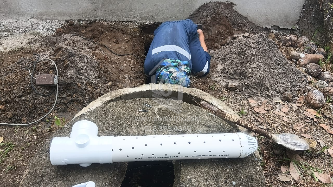 Team Doomifix.com hari ini bermula tengah hari buat pemasangan sistem overflow tangki septik untuk client kami di Dungun.